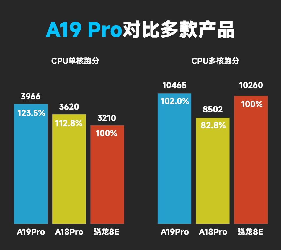 就目前跑分来看还无法准确分辨出A19Pro和A19在CPU部分的差距有多大。