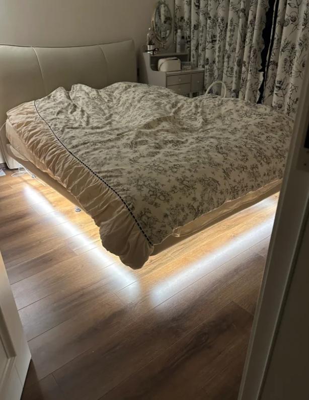 很多人对网上的悬浮床迷恋得不行,底部小灯带一打,满满的氛围感,甚至让单调的卧室,变得有那么一丝情趣!
