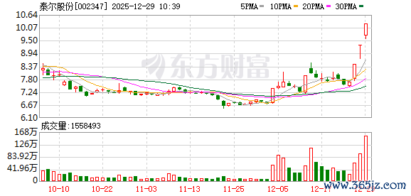 数据宝统计,截至10:03,泰尔股份成交额15.33亿元,创2024年12月16日以来新高。最新股价上涨9.89%,换手率30.69%。上一交易日该股全天成交额为8.68亿元。
